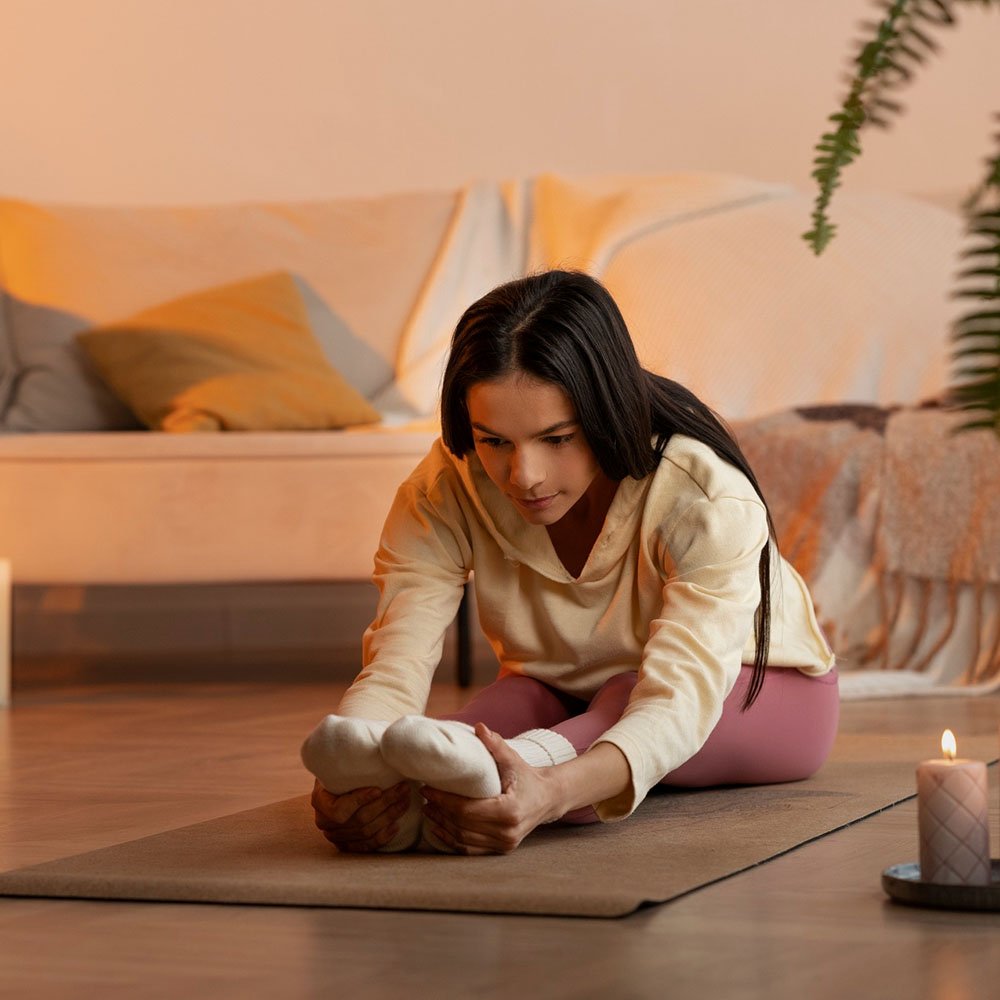 Soft, floor-based stretches synchronized with lunar (Moon) energy to gently soothe the body and mind.